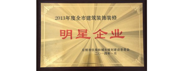 華業(yè)玻璃被日照市住房和城鄉(xiāng)規(guī)劃建設(shè)委員會授予“2013年度全市建筑裝飾裝修明星企業(yè)”。