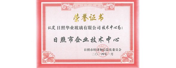 華業(yè)玻璃被日照市經(jīng)濟和信息化委員會認定為“日照市企業(yè)技術(shù)中心”。