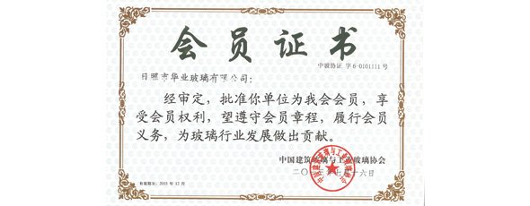 華業(yè)玻璃成為“中國建筑玻璃與工業(yè)玻璃協(xié)會”會員。
