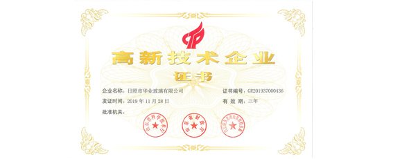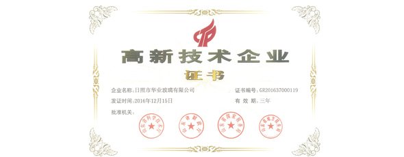 華業(yè)玻璃被認定為“高新技術(shù)企業(yè)”。